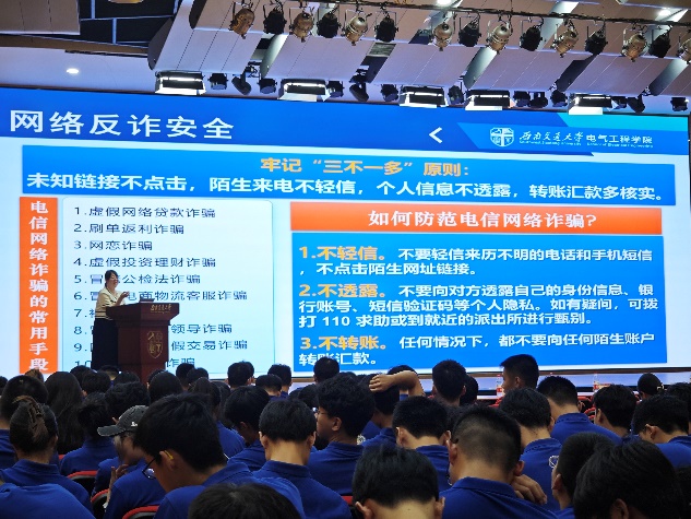 大会第二项议程,开展研究生新生安全教育。大会首先从实验室安全、宿舍安全、交通与出行安全、政治学习等角度出发,进一步加强同学们对于安全问题的重视程度;并结合校内外实际案例,提醒大家吸取惨痛教训,时刻敲响安全的警钟。同时,强调了防范电信诈骗的“三多一不”原则,帮助同学们远离常见的电信诈骗。此外,也介绍了研究生可能遇到的心理问题及情感问题,并提供了心理咨询的方式,引导新生们进行健康积极的情绪排解,以积极乐观的心态面对可能发生的困难。