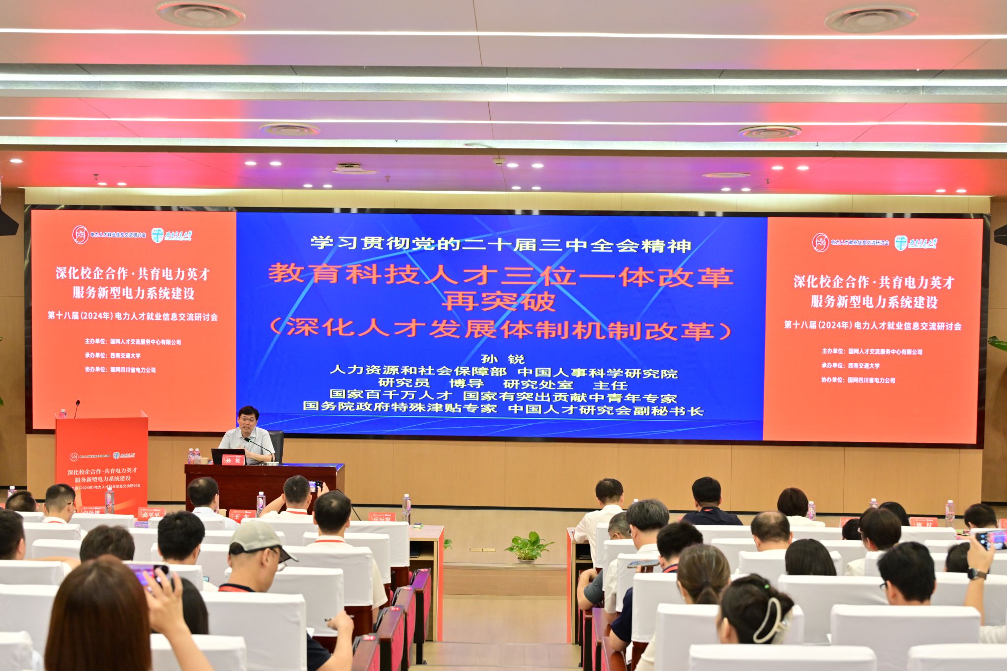 大会期间,中国人事科学研究院人才理论与技术研究室处室主任孙锐作《教育科技人才三位一体改革再突破(深化人才发展体制机制改革)》专题讲座。孙锐主任提到,教育、科技、人才是全面建设社会主义现代化国家的基础、战略性支撑。坚持科技是第一生产力、人才是第一资源、创新是第一动力,深入实施科教兴国战略、人才强企战略,开辟发展新领域新赛道,不断塑造发展新动能新优势。通过教育优先发展、科技自立自强、人才引领驱动,加快建设科技强国、人才强国,能够全面提高人才自主培养质量,着力造就拔尖创新人才,聚天下而用之。
