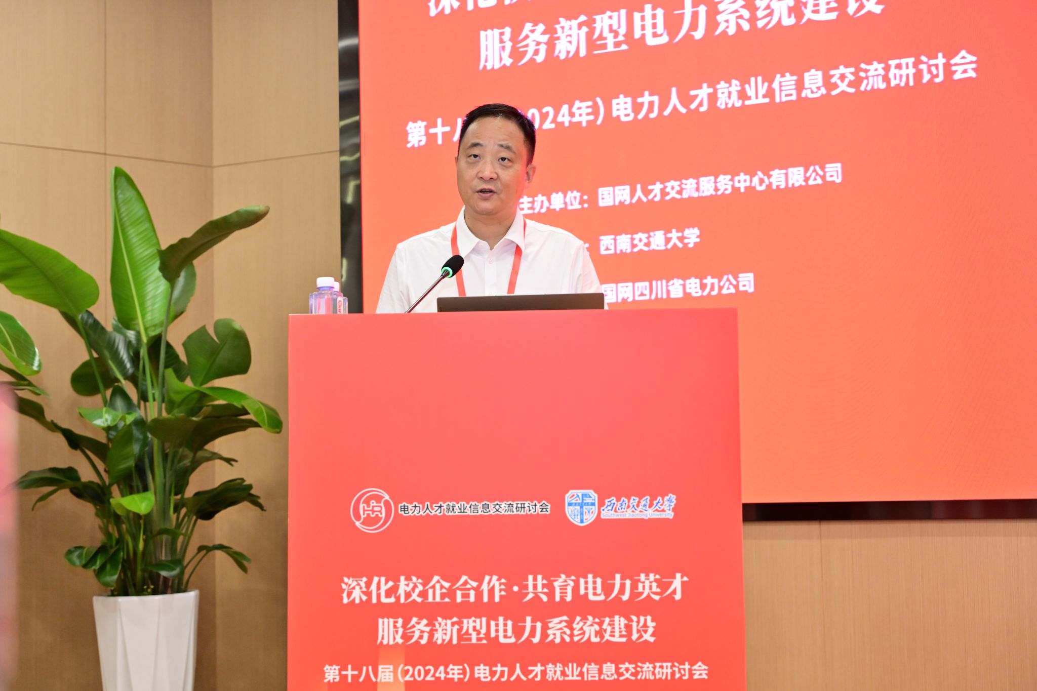 国网山东电力党委组织部(人力资源部)副主任刘小宝作题为《深化校企合作,厚植人才沃土,双向奔赴共育新时代电力行业高素质人才》的专题发言。刘小宝副主任表示,国网山东电力打造招聘服务品牌、校企合作样板、人才培养范式,将不断完善校企合作机制,为优秀人才提供更好的发展机遇、更优的发展环境,全力以赴为人才赋能。